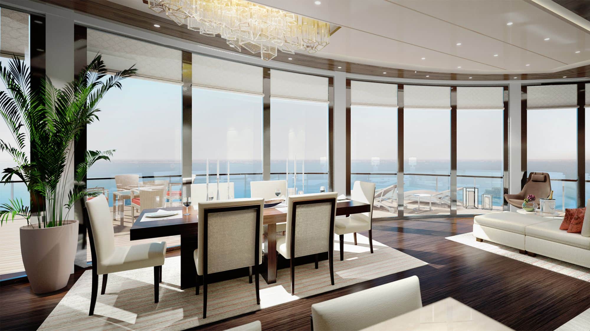 Sus barcos ofrecerán lujos sin precedentes en las líneas de cruceros: áreas comunes amplias y abiertas, restaurantes íntimos que ofrecen comidas las 24 horas y suites para huéspedes con techos altos y lavamanos con dos camas individuales.