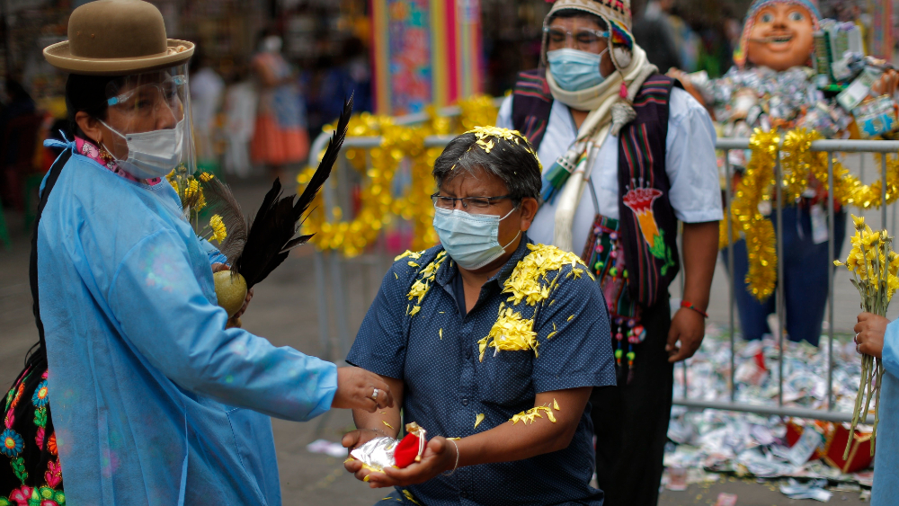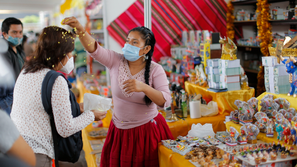 Es para que pueda florecer nuevamente su corazón, para que pueda pagar las deudas, tener un negocio”, después de este “mal año que hemos tenido con el virus”, explicó a Efe la maestra boliviana Victoria Jalgo, mientras arrojaba a su clienta flores amarillas, símbolo de la prosperidad.