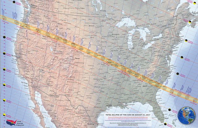 El fenómeno astronómico, que ya ha sido bautizado como “El Gran Eclipse Americano”, iniciará en el Océano Pacífico y recorrerá el centro de Estados Unidos, por lo que podrá verse en Oregon, Idaho, Wyoming, Nebraska, Missouri, Kentucky, Tennessee, Carolina del Norte y Carolina del Sur, para concluir en el Océano Atlántico.