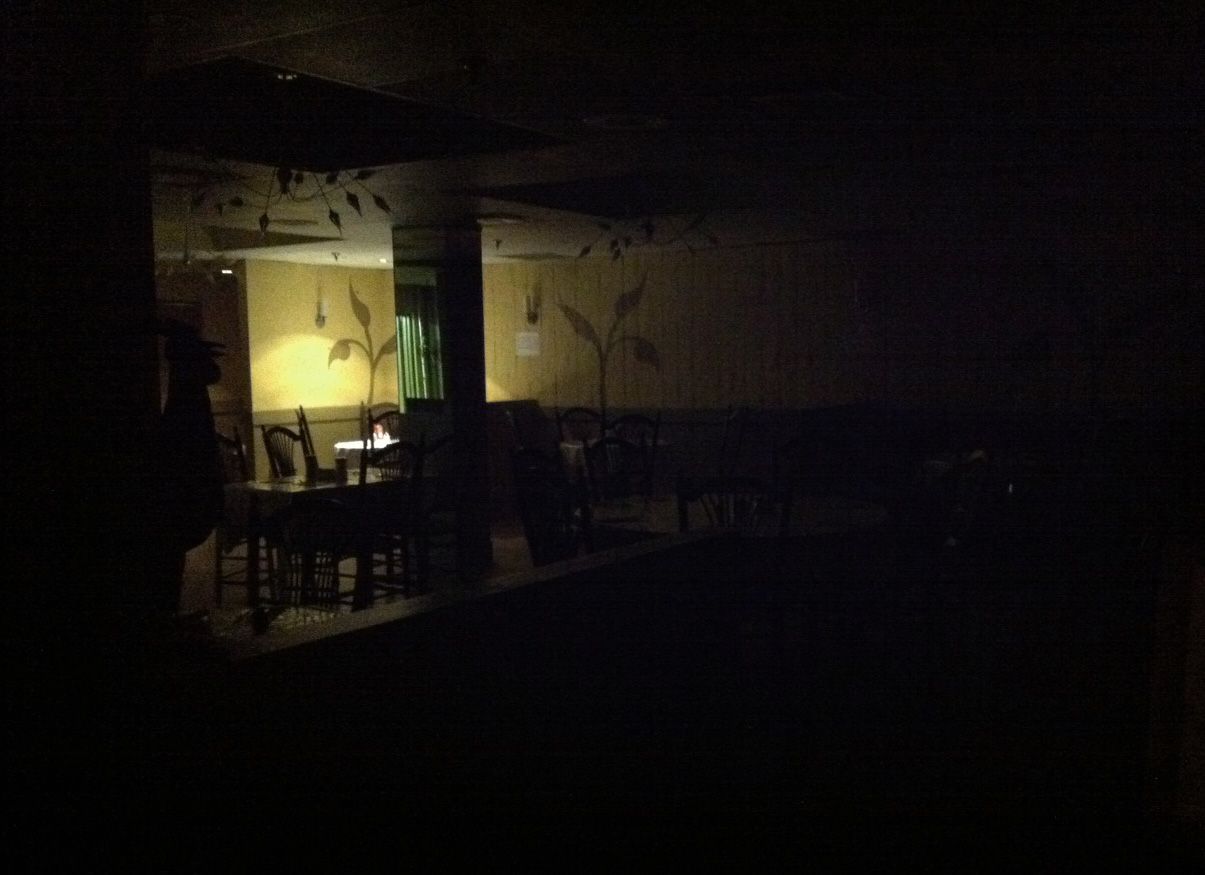 Ubicado en la intersección de las calles Church y Charles, en pleno centro de la ciudad, este restaurante con varios salones ofrece la experiencia de comer o cenar sin celulares ni velas, sin luz.