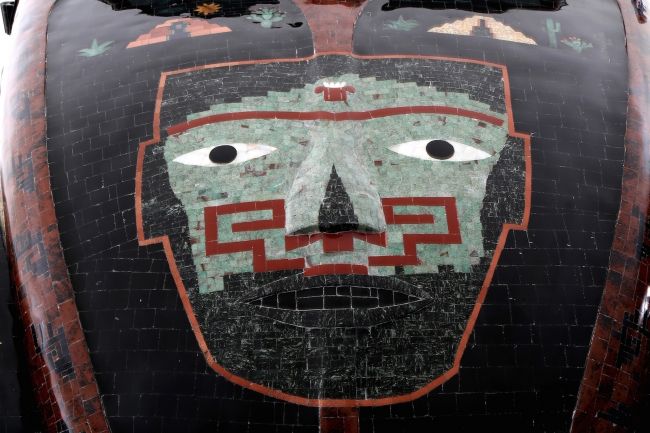 En las salpicaderas está la imagen de Quetzalcóatl, la serpiente emplumada, uno de los dioses de la cultura mesoamericana.