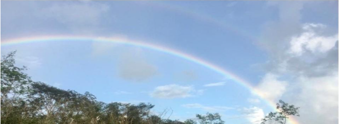 Un hermoso arcoíris de esos que rara vez se ven completos despide el fin de semana, mientras dejamos atrás tan bello paraje. Me quedo con esta sensación de haber habitado por un par de días justo en lo mismo que llevo por dentro, un intercambio entre la magnificencia de la creación y la obscuridad de los problemas que existen. Un paso entre aquello que duele y aquello que engrandece. Una posibilidad de poder estar entre los dos mundos y aun así…. sentirme plena.