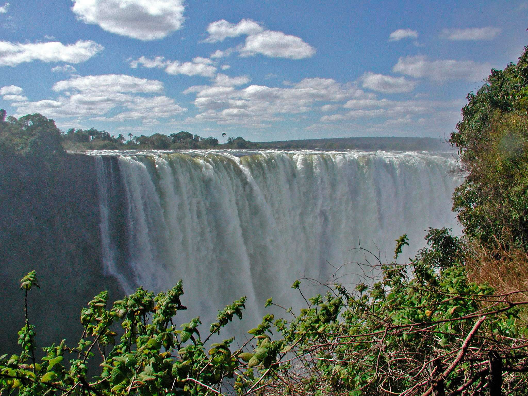 El explorador David Livingstone les puso el nombre de Cataratas Victoria en 1855, en honor a la Reina Victoria de Inglaterra, pero localmente se las conoce como Mosi-oa-Tunya, el humo que truena. Este espectacular y estruendoso salto de agua del río Zambeze, en la frontera de Zambia y Zimbawe, forma la cortina de agua más larga del planeta (1,7 kilómetros de extensión) y es patrimonio mundial desde 1989.