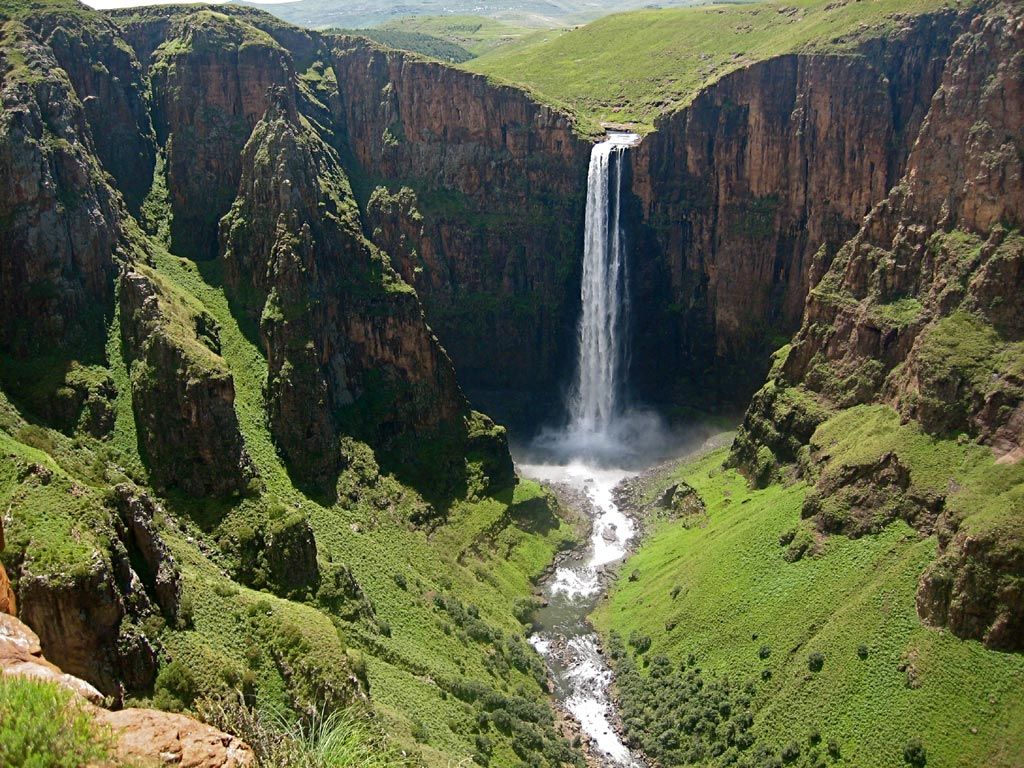 El salto del Tugela es la segunda caída de agua más grande del planeta (unos 948 metros). Se localiza en las montañas del Dragón y forma parte del Parque Nacional de Royal Natal, al este de la República de Sudáfrica. Son cinco cascadas estacionales, es decir, su flujo depende mucho de la época del año. En invierno es posible que las más altas se congelen, presentando columnas de hielo. El entorno presenta una enorme riqueza botánica.