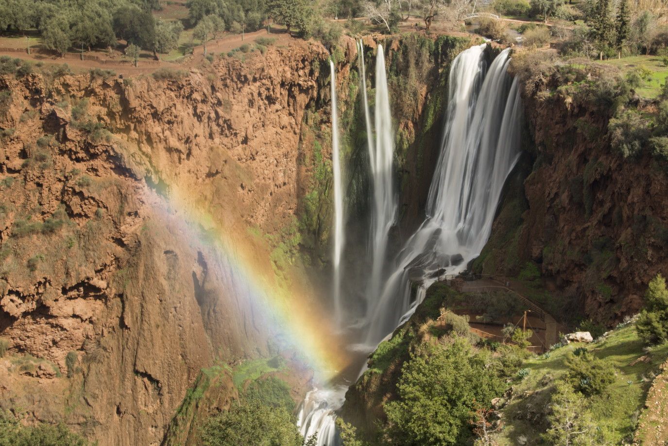 En bereber, ‘ouzoud’ significa olivo, como los que jalonan el camino de acceso a la base de esta cascada localizada en el pequeño pueblo de Tanaghmeilt, en el Medio Atlas, en el centro de Marruecos. Está considerada la más alta (unos 110 metros) y bella del país. En la cima, pequeños molinos aún en uso. Y en el agua, bañistas disfrutando del entorno.