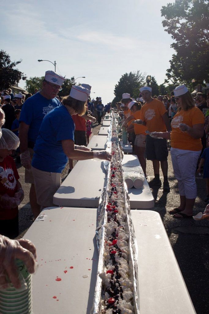 El Ludington Daily News reportó que el postre helado, que midió poco más de 905 metros y alimentó a miles de personas a lo largo de ocho cuadras en el pueblo junto al Lago Michigan.