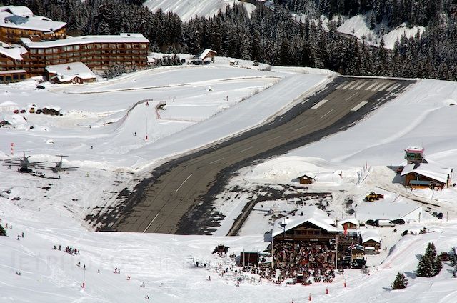 Al aeropuerto de Courchevel solo tienen acceso avionetas y es comúnmente utilizado por esquiadores que frecuentan la zona montañosa.