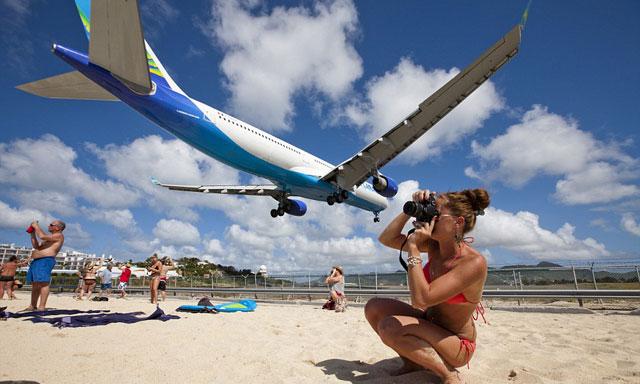 El atractivo principal del aeropuerto es que los aviones vuelan a escasos 25 metros sobre la playa, aeronaves de gran tamaño como el Boeing 747 y el Airbus A340 aterrizan en la pista, misma que en ocasiones debe ser utilizada por completo para despegar o aterrizar.