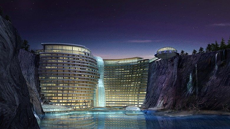 El complejo de lujo, incrustado en el borde de una cantera abandonada en las afueras de Shanghái, será inaugurado a principios de 2017.