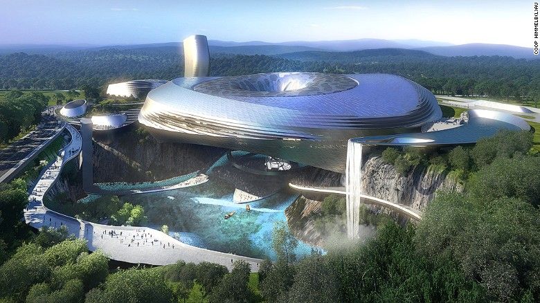 Este complejo también será construido en una cantera en desuso y estará suspendido parcialmente sobre un pozo.