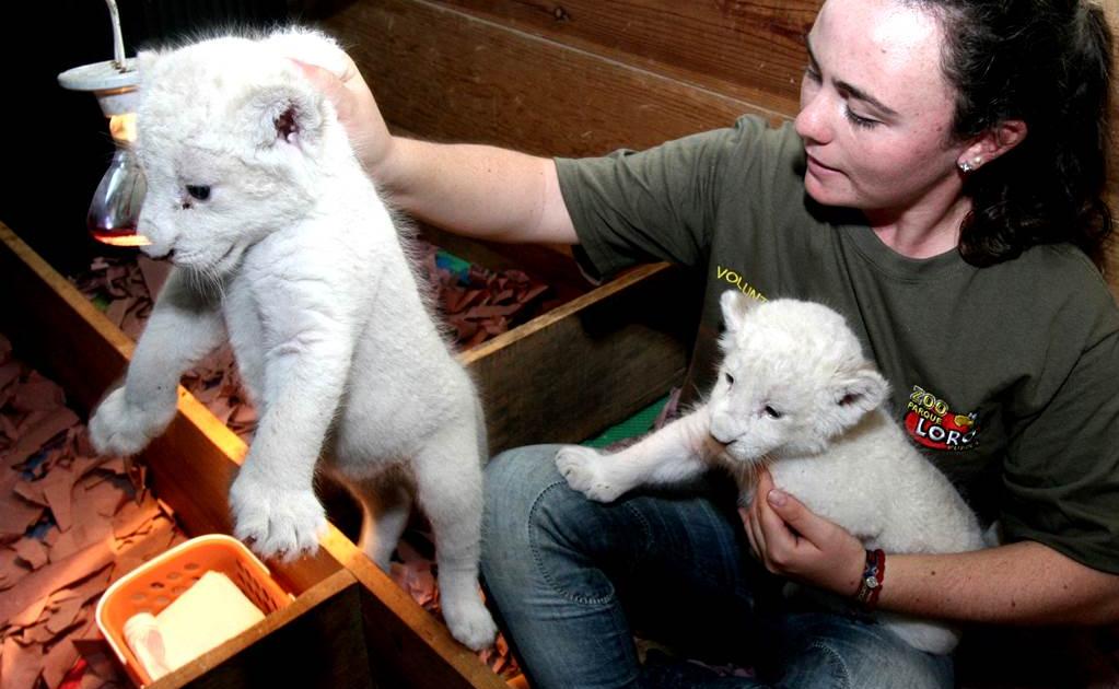 El zoológico Zoo Parque Loro Puebla informó del nacimiento de tres leonas blancas y dos tigresas del mismo color, dos especies que se encuentran en peligro de extinción en vida libre.