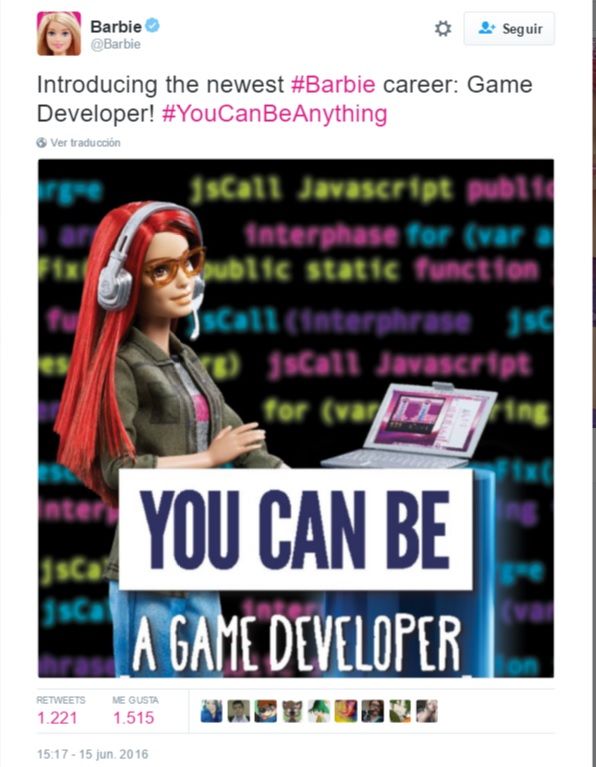 En pasado enero, Mattel anunció que su muñeca tendrá un nuevo empleo y le dio el título “Barbie Desarrolladora de Videojuegos”, con lo que señala la empresa, podremos ver a Barbie “codificando en acción”. Así también lo confirmó a través de su cuenta de Twitter.