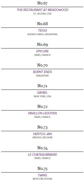 En esta primera entrega solamente se enumeran los restaurantes que se ubican entre los puestos 51 y 100, entre los que se encuentra el de un mexicano.