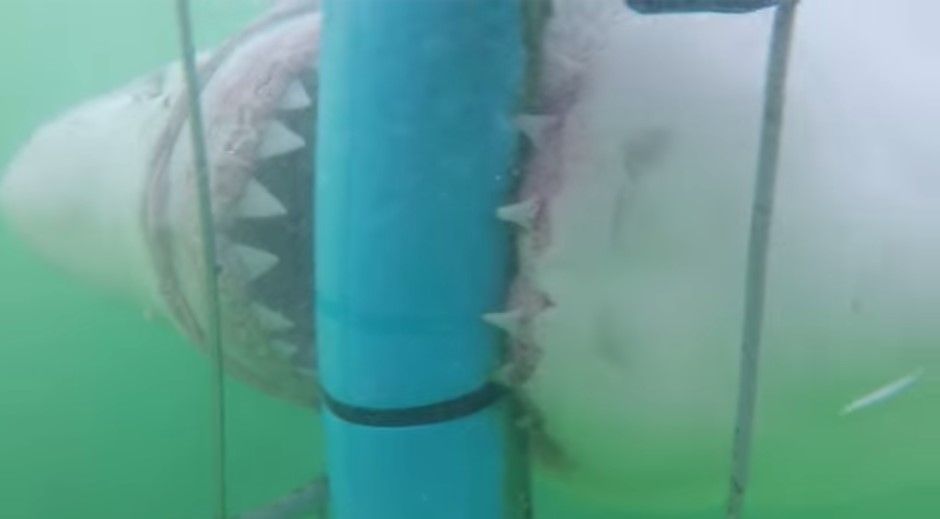 Un grupo de turistas estaba explorando las profundidades de las costas de Mossel Bay, Sudáfrica, y en una jaula submarina fueron completamente sorprendidos por un tiburón blanco que aparentemente estaba bastante hambriento.