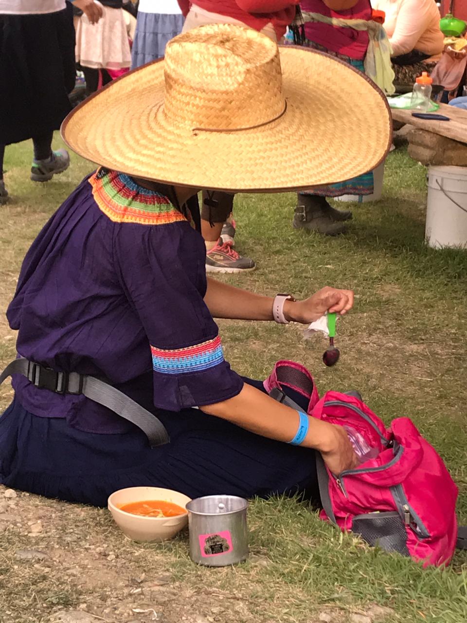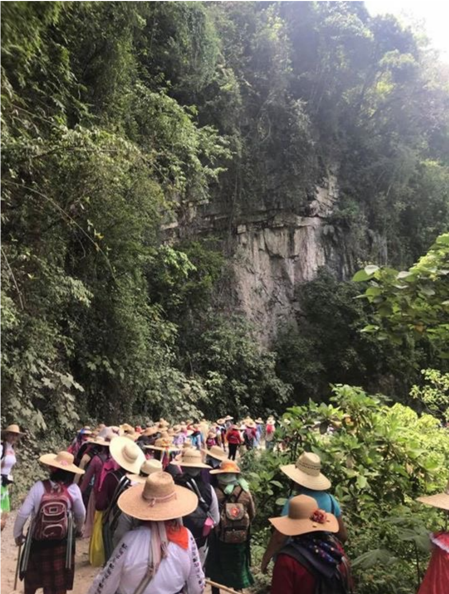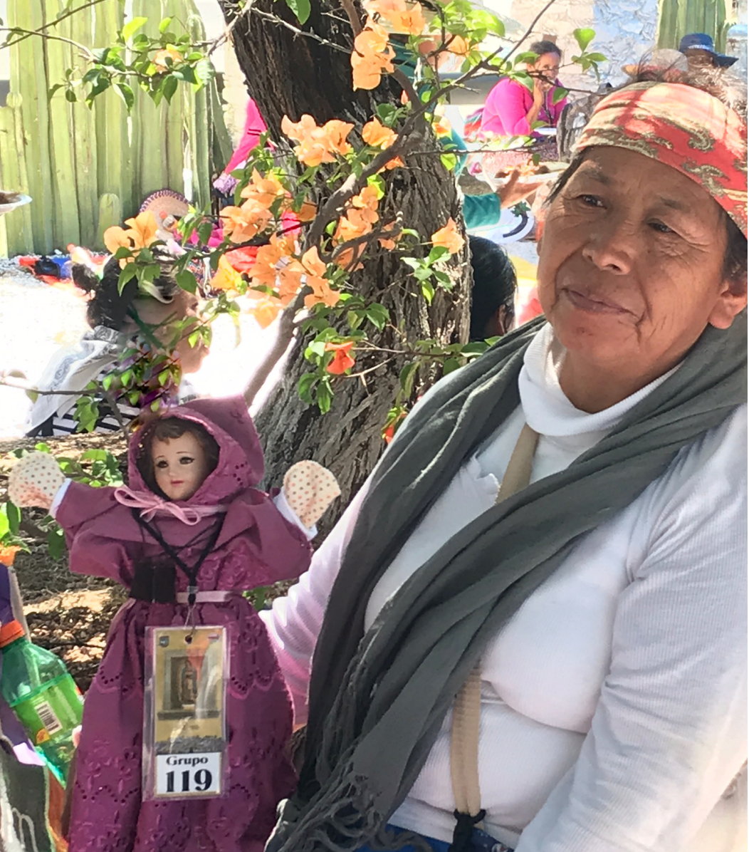 Se sale un par de horas antes de la madrugada, se reza en el camino mientras los pies se van llenando de ampollas. En la columna de mujeres, algunas campesinas con huaraches de suela de llanta, caminarán con una intensión, los kilómetros que hay entre un lugar y otro. No traen nada, solo una fe que las impulsa hacia adelante paso a paso. Dormirán donde les den posada. Comerán lo que generosamente los pueblos puedan ofrecer, mientras cargan sus pesados estandartes. Estas son mujeres indígenas que dan gracias por todo lo que SÍ tienen y al menos yo no escuche una sola vez quejas, por lo mucho que les falta.