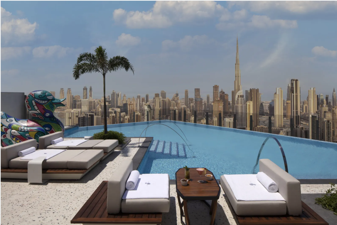 Toques de creatividad inesperados acentúan cada espacio del hotel. El elevador express transporta a los huéspedes directamente al sky lobby, cuyas ventanas de piso a techo develan un elegante lounge y bar en las alturas donde imponentes rascacielos ilustran un paisaje rodeado de aguas azules prístinas que emanan una cultura de esplendor absoluto.