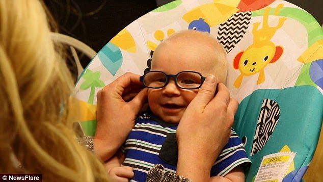 El bebé de tres meses del Condado de Warren en Iowa fue captado en video la primera vez que vio a su madre gracias a la ayuda de unos pequeños lentes que esta le coloca.
