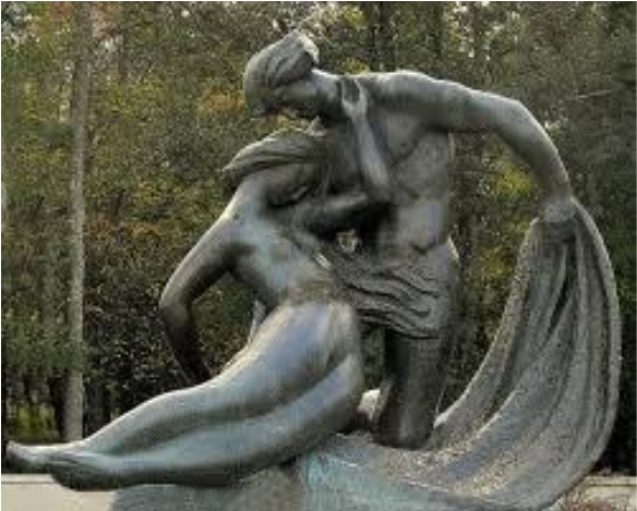 Lo encontró cantando bellas melodías y su voz de inmediato surtió un mágico embrujo. La ira se fue aplacando, pero además resulto que el joven pescador era con más de bien parecido y se fue sintiendo atraída por su masculinidad. De pronto olvido la razón por la que había subido, olvido los mandatos de los dioses, “esta prohibido enamorarse de los humanos”. Y todo hubiera sido más fácil si él no se hubiera enamorado también. Pero cayo rendido ante su belleza y ante aquello que para el era desconocido. Nunca había sentido esta fuerza incontrolable. Así que el amor los tomó y los envolvió llenándolos de dulzura y se fundieron el uno en el otro durante días y noches hasta perderse en el cosmos, ya no había un “tú” y un “yo” sino que todo se envolvía en “nosotros.” Absortos con todo lo que emanaban, iba destilando amor en todo lo que tocaban.